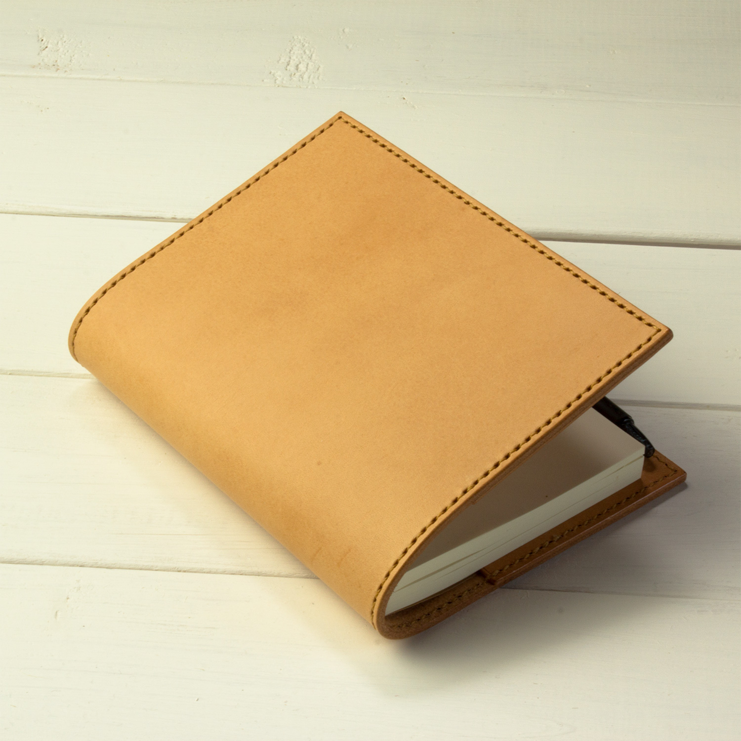 シンプルなデザインの左右ポケットにノートの表紙を差し込んで使う手帳カバーです。