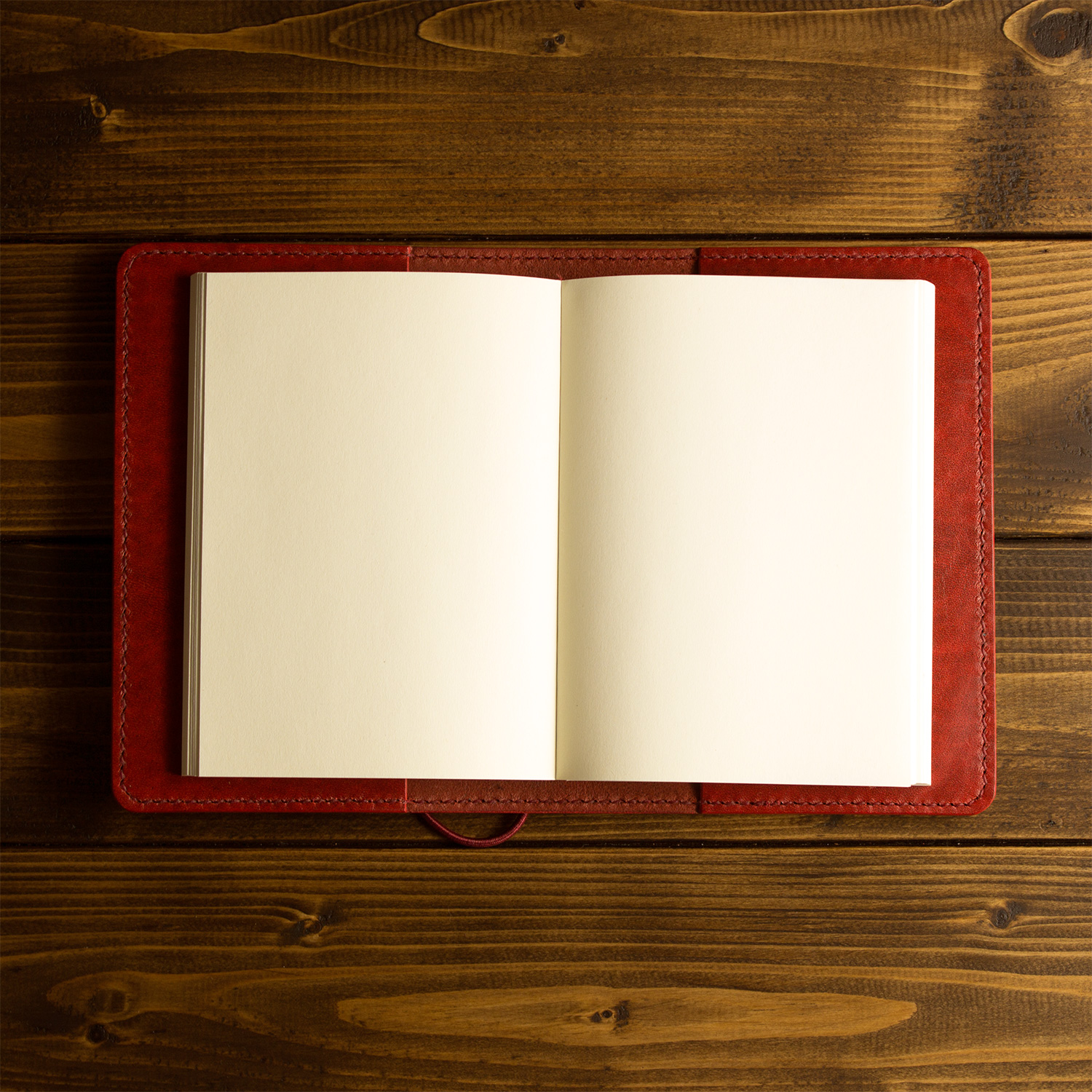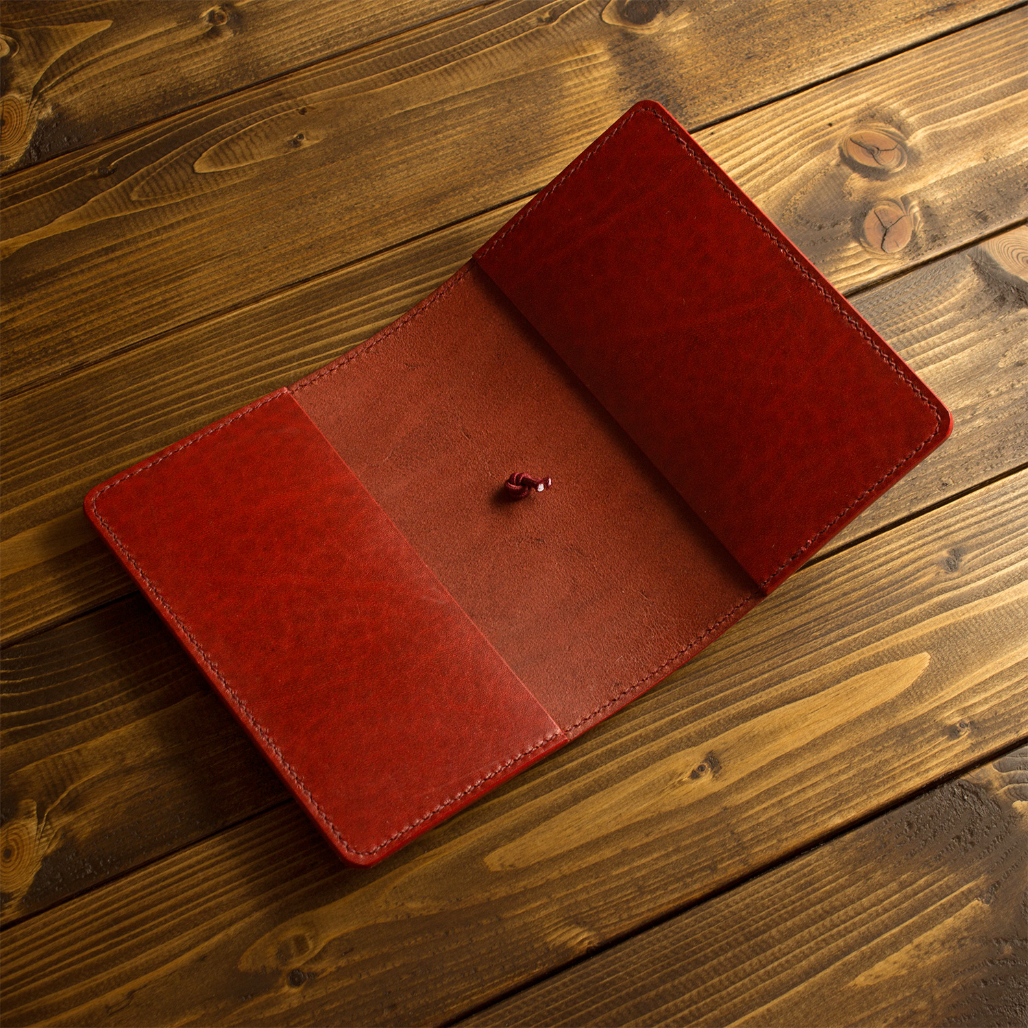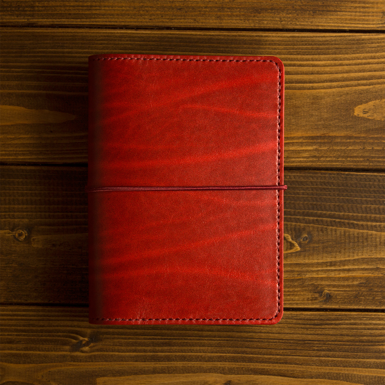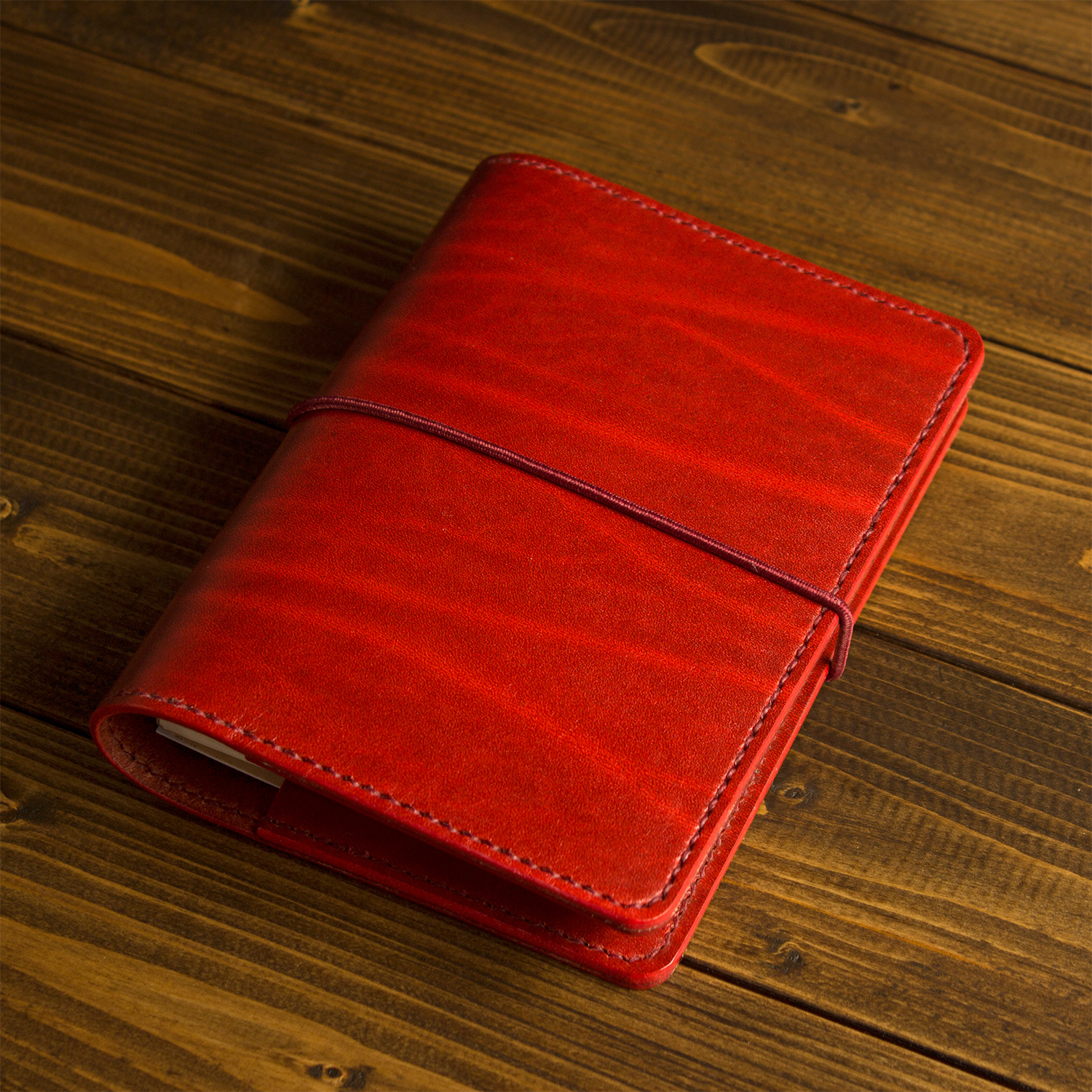 厚手の2mmのヌメ革を使用したシンプルなデザインの手帳カバーです。 閉じた時はゴムバンドで固定できますので、カバンに入れたときに開いてしまうのを防げます。