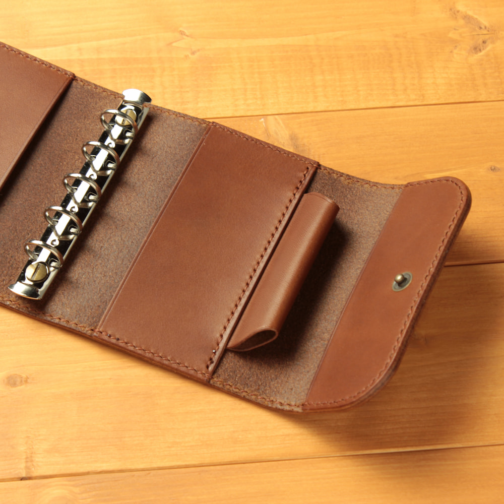 内側のインナーはポケットになっており、手帳を机の上に置いた時にも書きやすいようにフラットになります。